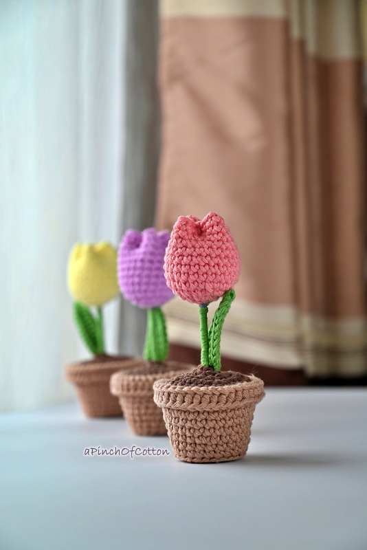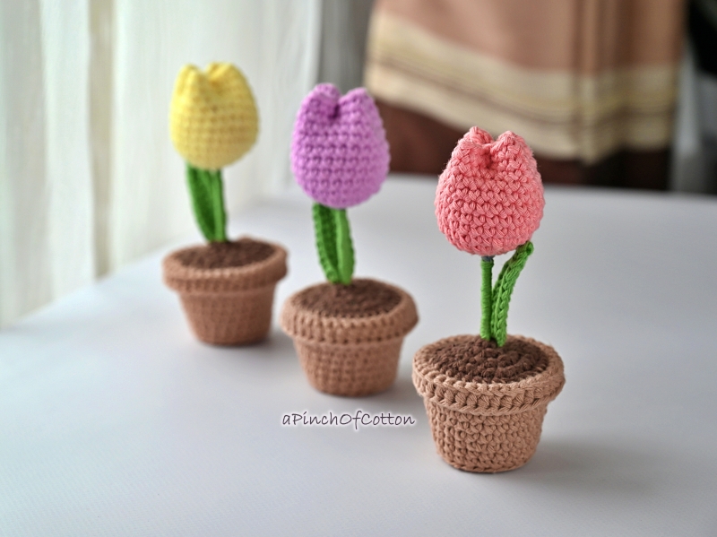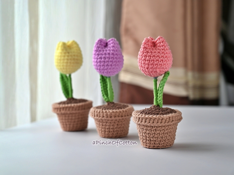 This crochet pattern includes 17 pages of detailed, easy-to-follow instructions for creating a little tulip in a pot. The PDF features clear written directions accompanied by numerous step-by-step photos, helpful notes, and tips throughout to guide you every step of the way.