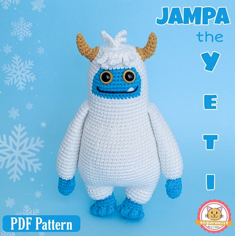 Meet Jampa the Yeti, a friendly snowy companion with the warmest heart! This PDF pattern includes detailed steps and photos for a smooth crocheting experience.